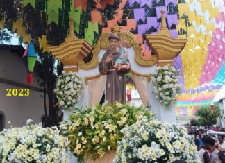 Sabe-se que outrora o andor de Santo Antônio era ornamentado por uma equipe de quatro pessoas idôneas e capazes de executar o trabalho. Eram...